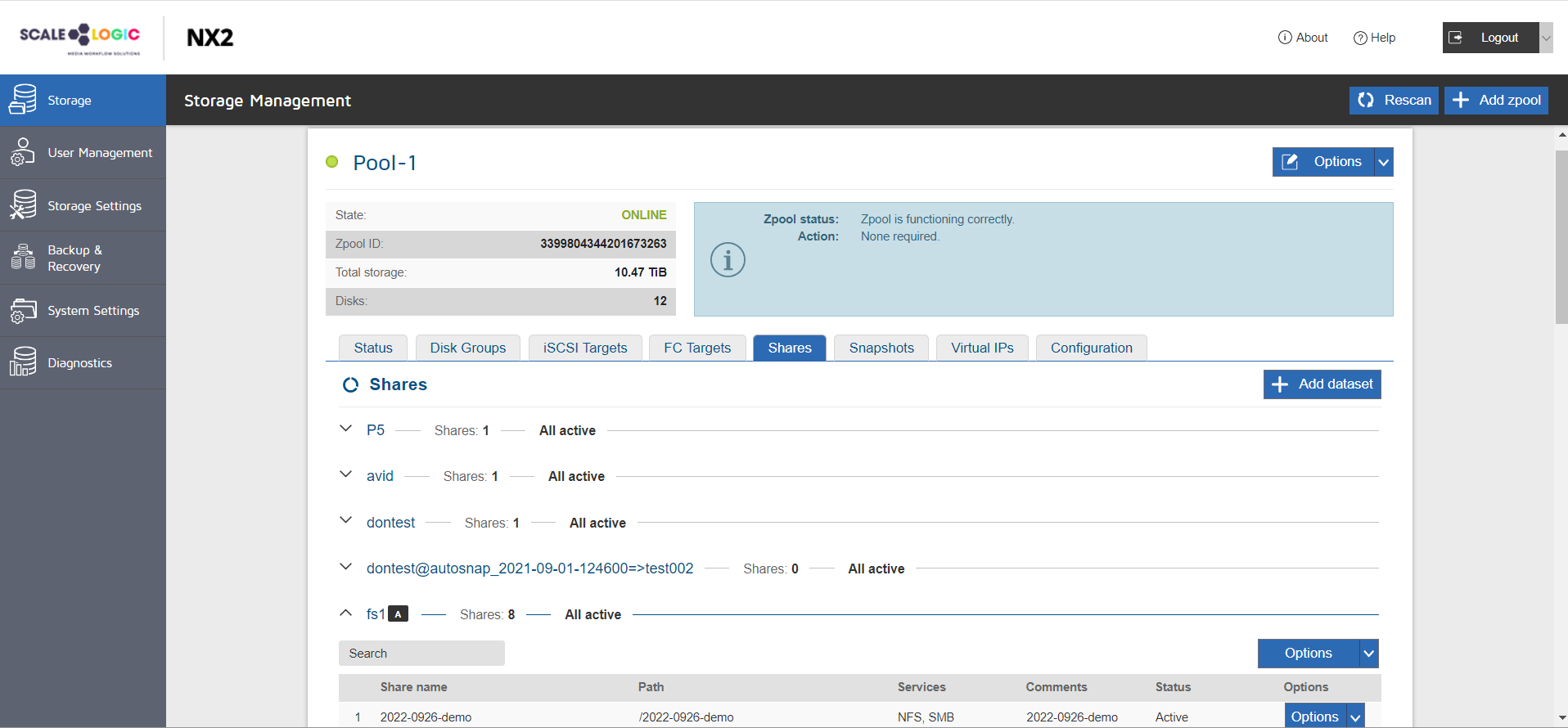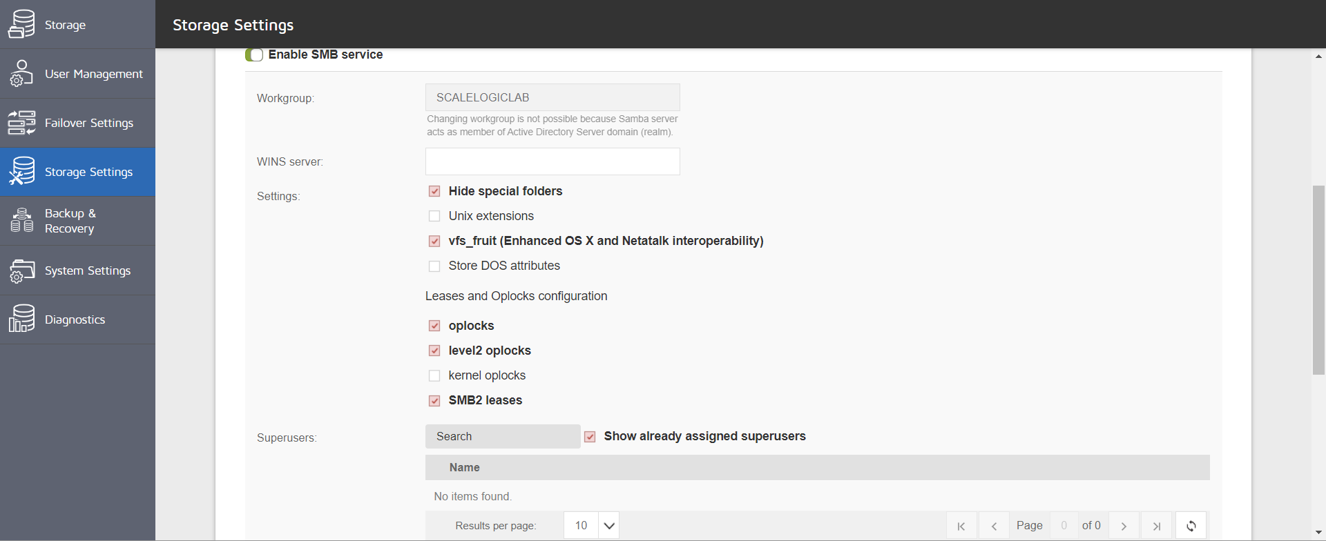 - If any of the share or storage settings do not match the provided examples and you do not know specifically why: open a ticket with Scale Logic Support