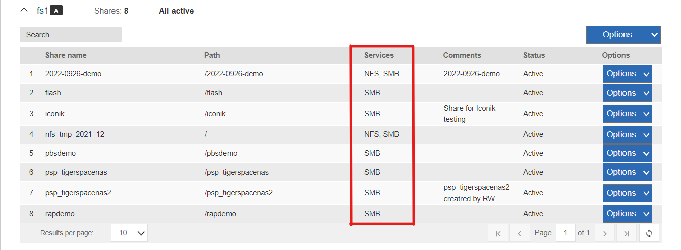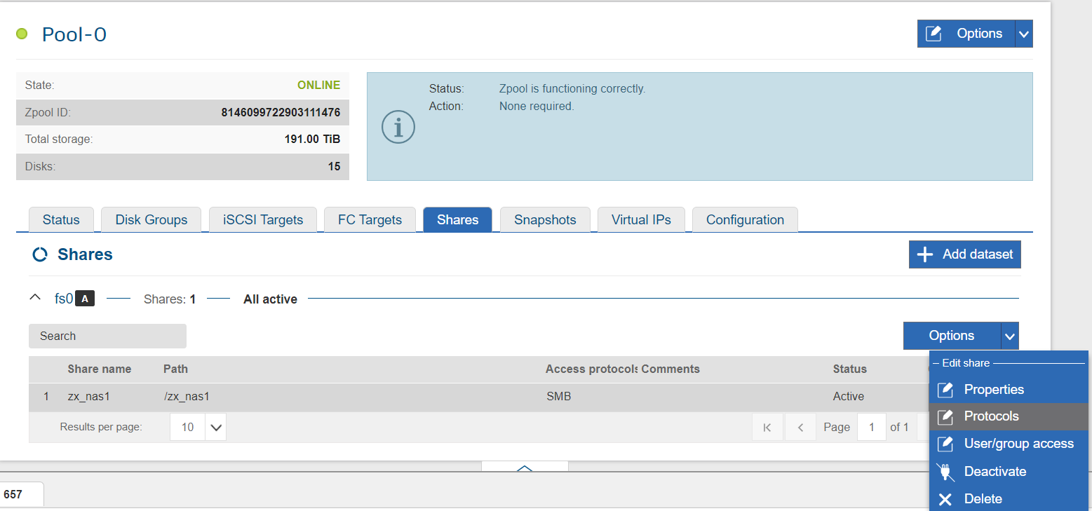 To determine which protocol(s) are in use, check the shares tab of your pool and dataset.