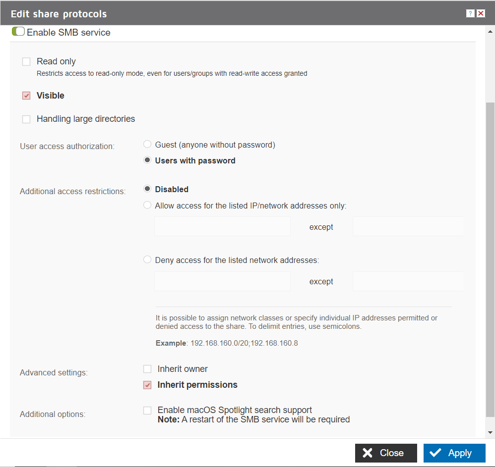 - if "Hide special folders" is not enabled, enable it now, as this may resolve your issue. The oplocks, SMB2 leases, and vfs_fruit settings are performance related and do not have any bearing on permissions.
