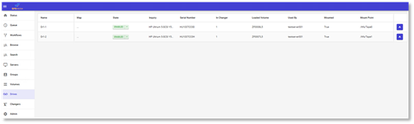The Drives Management section allows you to view and manage tape drives connected to the SF Archive system.